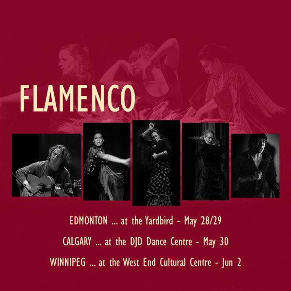 I’m thrilled to be back performing with my longtime friends and colleagues: dancers Claire Marchand (Vancouver/Winnipeg) and Rosanna Terracciano (Calgary); and guitarist Peter Mole (Vancouver); as we collaborate with singer and percussionist Francisco Orozco “Yiyi” (Spain), for an intimate evening of flamenco dance, guitar, piano, rhythm, and song. It’s a dream to travel with this show to my hometown of Calgary at the DJD Dance Centre, and then to Winnipeg at the West End Cultural Centre.